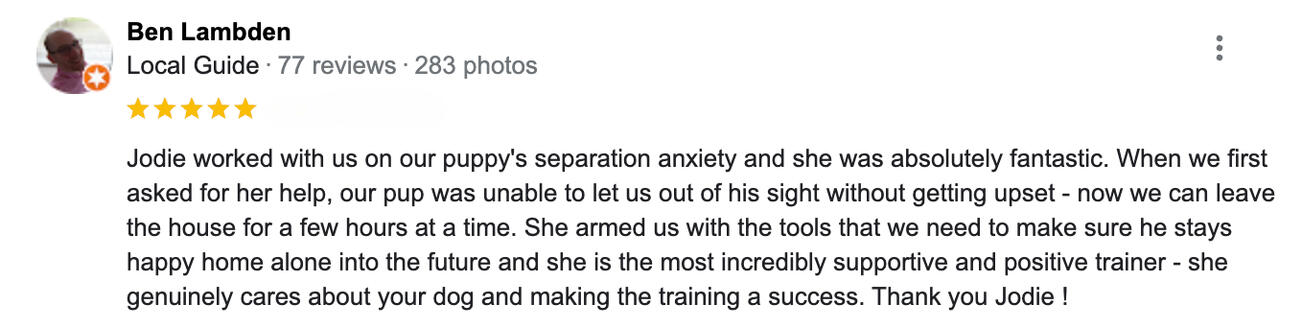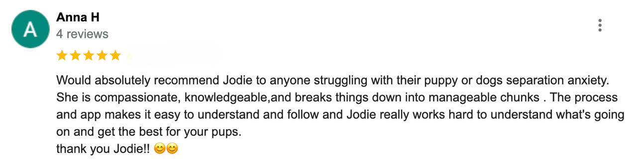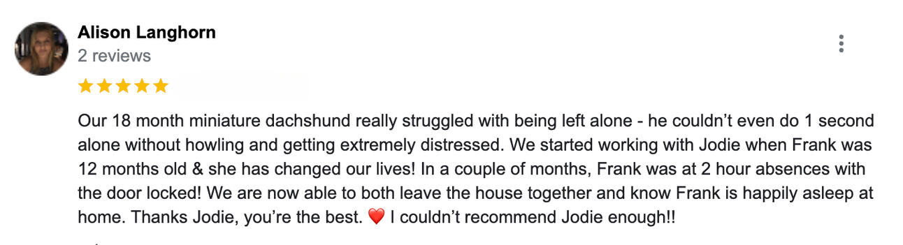 I’ve helped over 500 dog owners who thought they’d tried everything.I’ve seen every case, from dogs who howl the minute the door closes to dogs who tear the house apart and I’ve guided them to being calm, happy and safe when left alone.